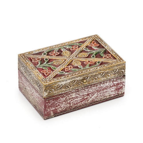 Antiqued Metal and Wood Red Bloom Box - 6 by 4 inch - Matr Boomie (B)