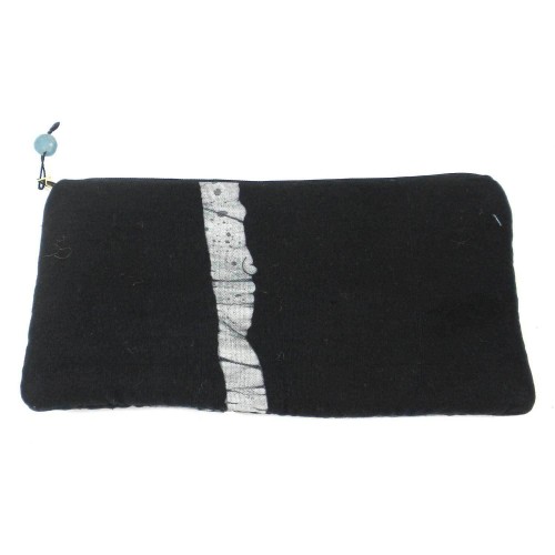 This Batiked Clutch is lined and padded and measures 7.5 inches by 4 inches. Zipper closure with bead pull.