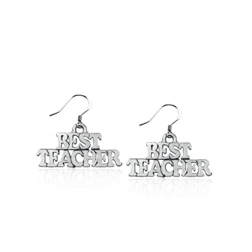 Best Teacher Charm Earrings in Silver