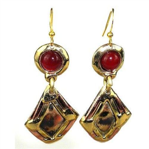 Carnelian Diamond Brass Earrings - Brass Images (E)