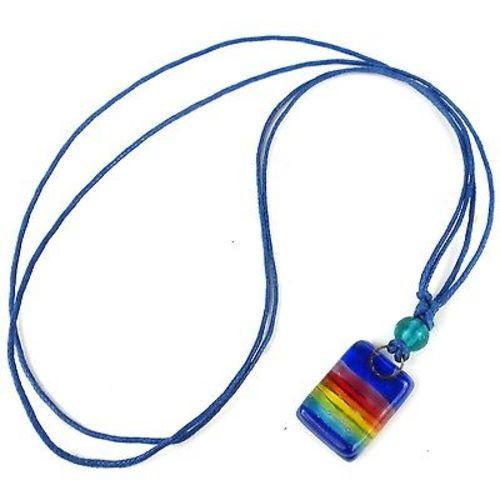 Handcrafted in Chile, this necklace celebrates the colorful art of fused glass. The cord adjusts from 16 to 32 inches, and the pendant measures 3/4 of an inch long.