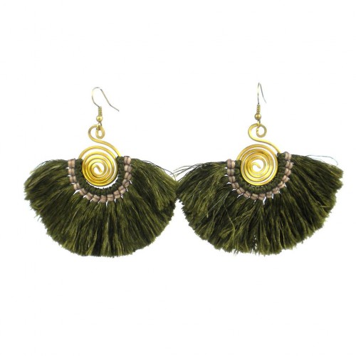 Flamenco Fringe Earrings - Moss - Global Groove (J)