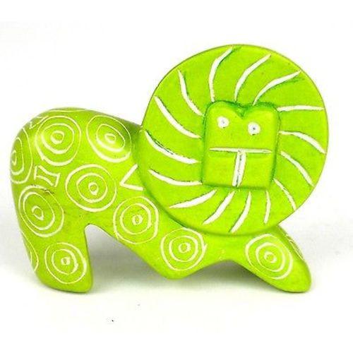 Handcrafted Mini Soapstone Funky Lion Sculpture in Lime - Smolart
