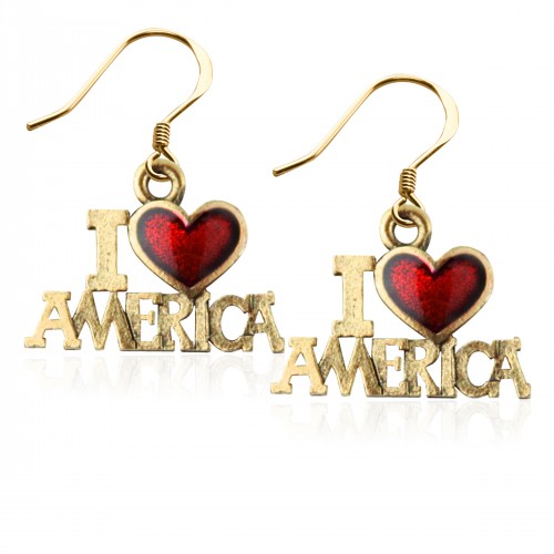 The perfect gift for July 4th or any patriotic person. Give that special patriot a memorable gift with this I Love America charm set of Earrings. Whether you prefer gold or silver, this I Love America charm set of Earrings will coordinate with your favorite Whimsical Watches, Whimsical Bracelets or Whimsical Necklaces. Whimsical Earrings are sterling silver or gold plated french wire and come with rubber backs.