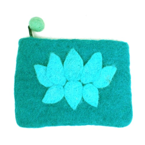 Lotus Flower Felt Coin Purse - Turquoise - Global Groove (P)