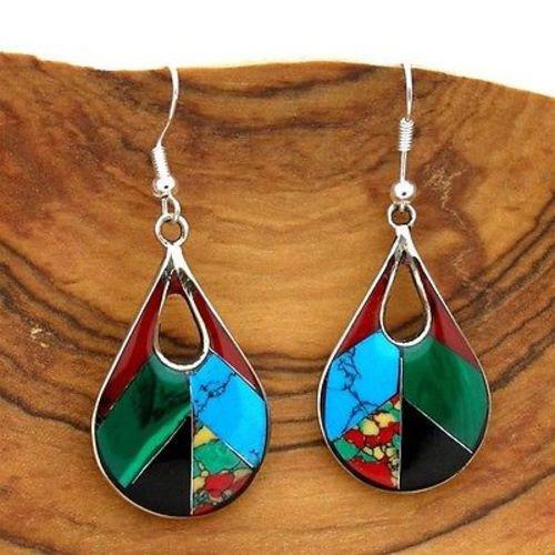 Open Alpaca Silver Teardrop Diagonal Mosaic Stone Earrings - Artisana