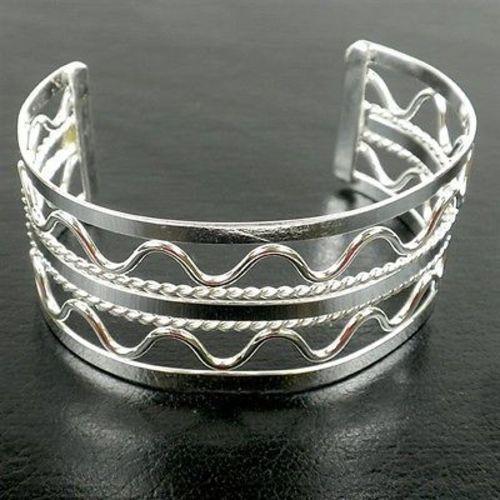 This brilliant handmade silverplated cuff bracelet features a Wave and Bar Design. The bracelet is 1.2 inches tall and measures 6.25 inches from end to end.