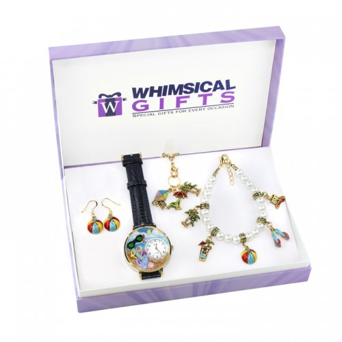Summer Fun in the Sun 4-piece jewelry set includes whimsical watch, bracelet, necklace and earrings.