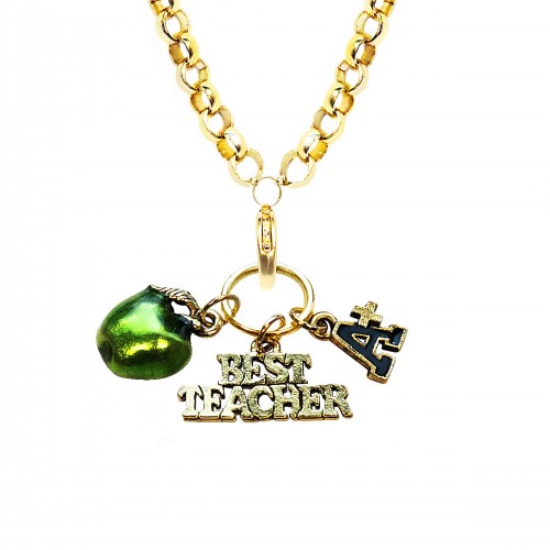 The perfect gift for any Teacher. Give that special Teacher a gift they will remember with this colorful Teacher themed charm necklace. Whether you prefer gold or silver, this Teacher themed charm necklace will coordinate with your favorite Whimsical Watches, Whimsical Earrings or Whimsical Bracelets. It fastens with a lobster-claw clasp for easy on and off. 18" length expandable to 20". Lobster claw clasp in front for easy charm change out, making a colorful statement for any occasion!