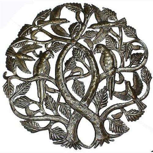 Tree of Life with Parrots 24-inch Metal Art - Croix des Bouquets